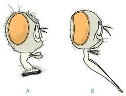 A diferencia de la mosca común (A), tiene un aguijón (B) y su picadura duele.